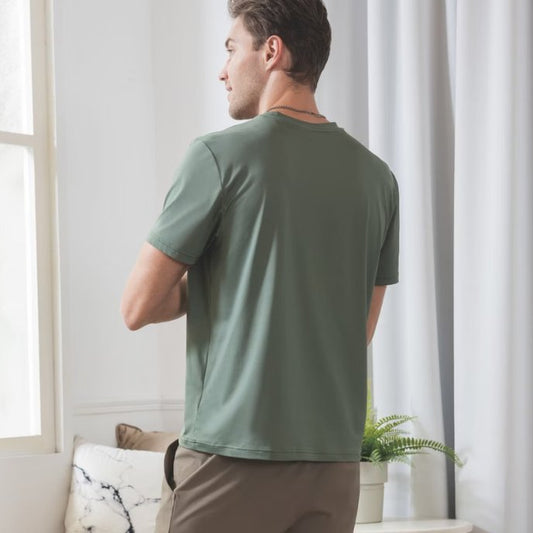 PHITEN MEN'S CREW NECK SHORT SLEEVE TOP - OLIVE GREEN