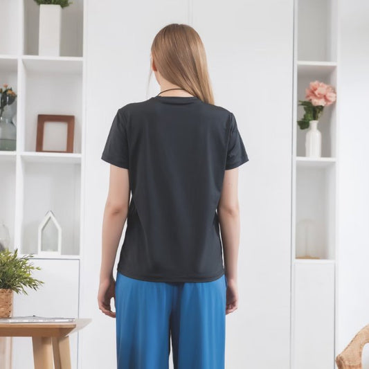 PHITEN WOMEN'S CREW NECK SHORT SLEEVE TOP - BLACK
