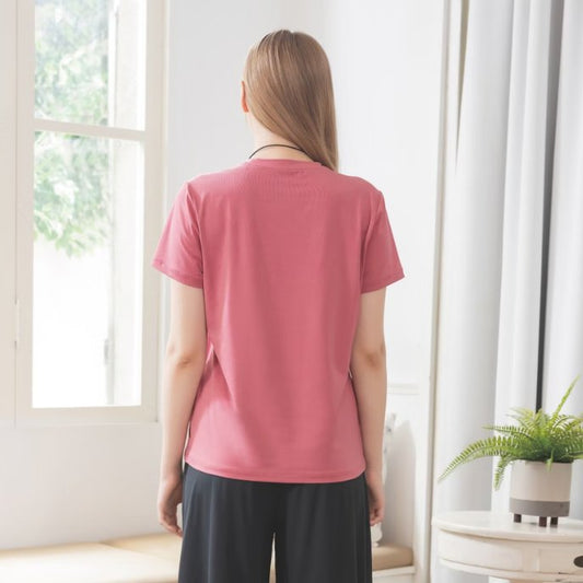 PHITEN WOMEN'S CREW NECK SHORT SLEEVE TOP - ROSE PINK