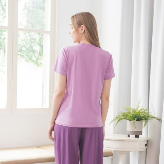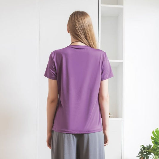PHITEN WOMEN'S CREW NECK SHORT SLEEVE TOP - PURPLE