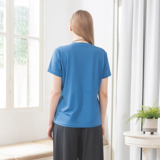 PHITEN WOMEN'S CREW NECK SHORT SLEEVE TOP - SAPPHIRE BLUE