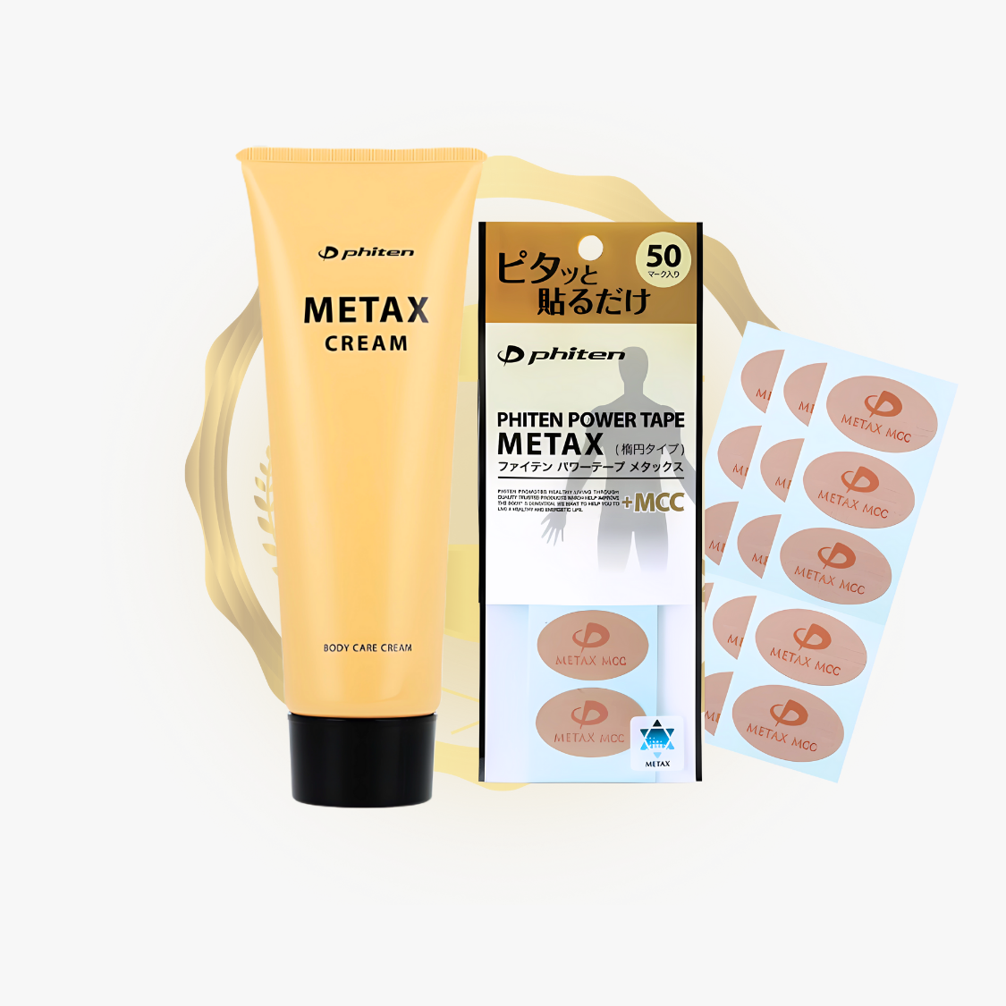 Experience the best duo for targeted support and all-over care — not limited to muscle health, joint health, sport care, injury recovery, relaxation, and aged care. This bundle combines Phiten’s best-seller and trusted Power Tape with your choice of Phiten METAX Lotion or Cream, working together to help you stay active, comfortable, and ready for anything.